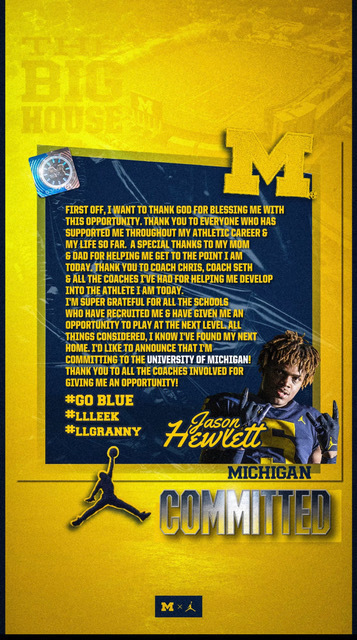 Congratulations to Chaney Cowboys standout, Jason Hewlett, for committing to the University of Michigan. WKBN recently highlighted Hewlettās announcement, and detailed his impressive feats this season; Hewlett was a part of leading the Cowboys to a record 10-2.